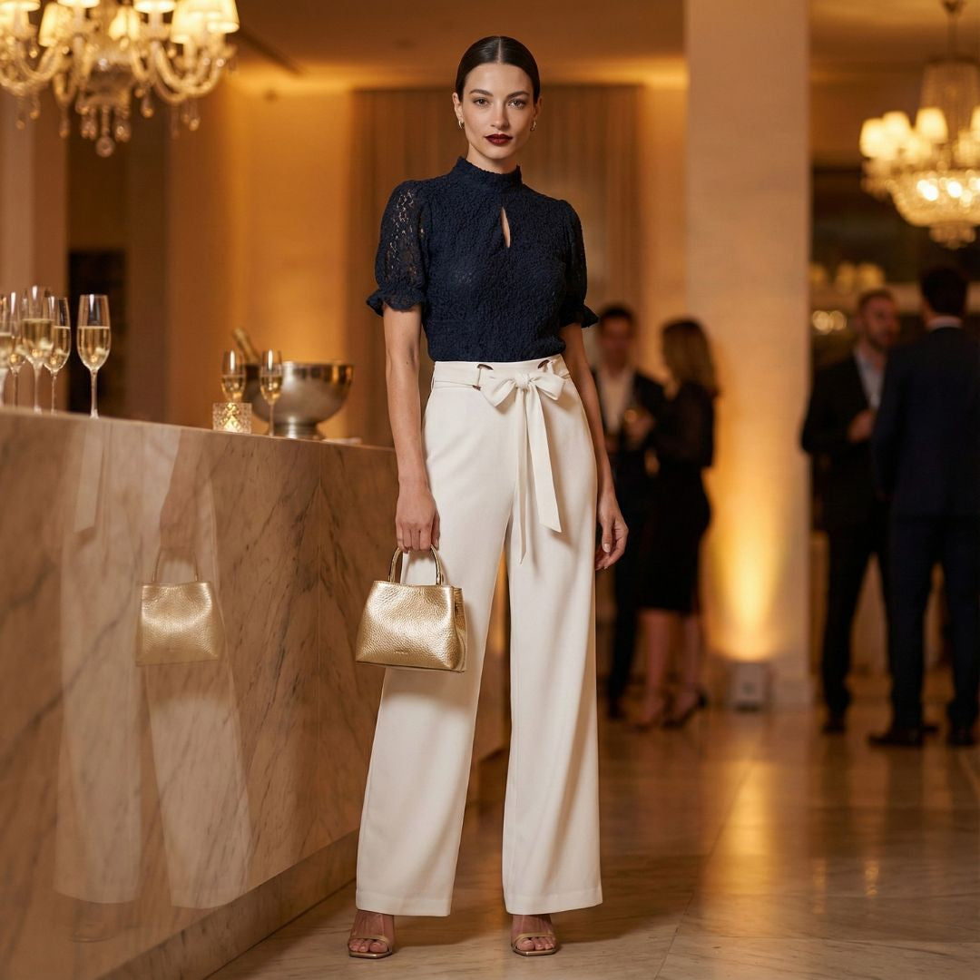 Soft, romantic, and beautifully refined — the BCBG Lace Ruffle Top brings effortless elegance to any moment. Crafted with delicate lace and subtle ruffle detailing, it frames the neckline with a graceful charm that feels both modern and timeless. The keyhole front adds a touch of allure, while the lightweight silhouette flatters at the hips for easy, versatile styling. Pair it with tailored trousers, skirts, or denim for a look that transitions from day to evening with natural poise. It’s the kind of piece that makes you feel instantly put together — polished, feminine, and confidently chic.
